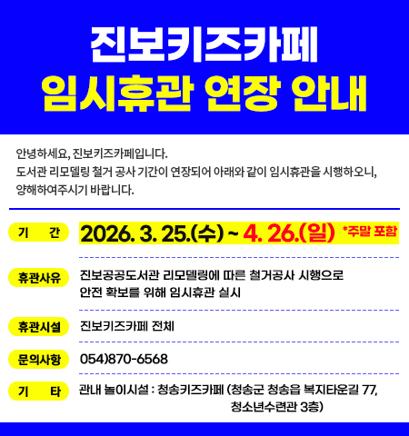진보키즈카페 임시휴관 연장 안내(~4/26)